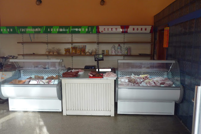 A sarkon egy szovjet időket idéző boltocska, üres pultokkal ásítozik